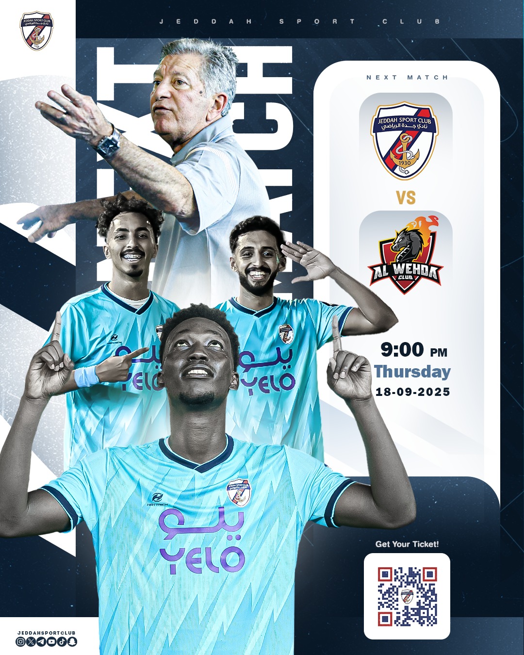 on بطاقة المباراة دوري يلو الجولة الثانية جدة 🆚 الوحدة